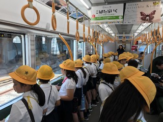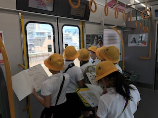 3年生は社会見学で、JR環状線一周と、「あべのハルカス」へ行きました。電車の中から見える風景や、それぞれの駅の様子を、熱心にメモしていました。