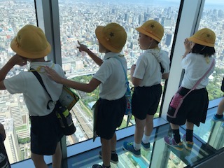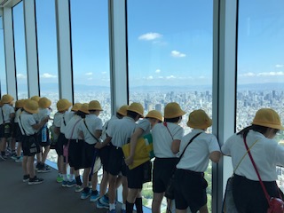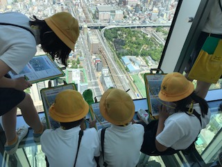 あべのハルカス300の展望台から、大阪を眺めました。お天気がとてもよかったので、前もっていただいたパンフレットの写真通りに、はっきりといろいろな建物を見ることができました。学校に帰ってから、見学してきたことを、がんばってまとめていきます。