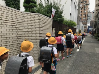 本日(3日)5時間目に、地域ごとに、登校班での1学期のふり返りをしました。地域に危険な場所がないかも確認しました。各班から出た反省を生かして、これからも、集合時間を守り、きちんと並んで登校しましょう。