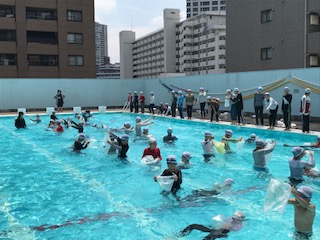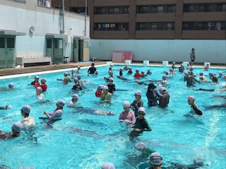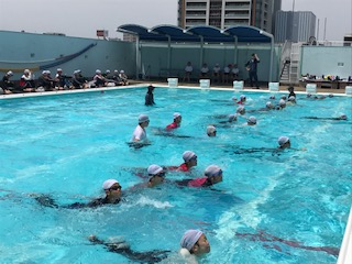 本日(8日)、3時間目に5・6年生が着衣水泳を行いました。3・4年生の時と同様に、水の事故を防ぐために、どのように行動すべきかを考え、長袖の服を着て泳いでみたり、ビニル袋を使って浮いてみたりしました。昨年度も学習していることもあり、すみやかに取り組むことができました。