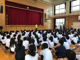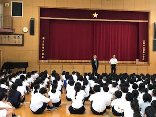 今朝の児童朝会で、先週から、新しく本校に着任された事務主事の方の紹介がありました。また、看護当番の先生からは今週のめあて「元気よくあいさつをしよう」のお話がありました。夏休みまであと2週間、元気にがんばりましょう。