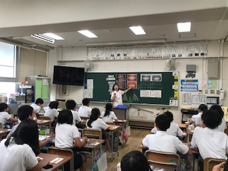 本日(9日)2,3時間目に「歯と口の健康教室」がありました。歯周病について、詳しく歯科衛生士の方から説明していただきました。そのあと歯を赤く染めて、自分の歯の汚れているところを確認し、実際に正しい歯磨きの仕方も学習しました。