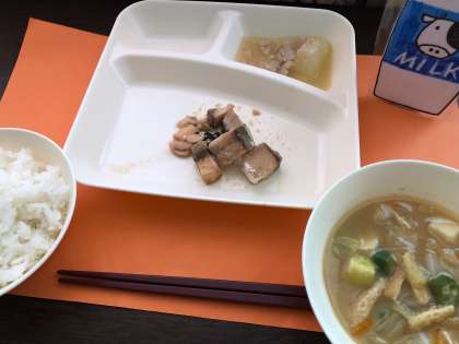 さけのつけ焼き みそ汁 とうがんの煮もの ごはん 牛乳