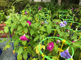1年生は、生活科で「アサガオ」を育てています。種から大事に育てたアサガオが、とてもきれいな花を咲かせています。梅雨明けももうすぐ、夏らしくなってきました。