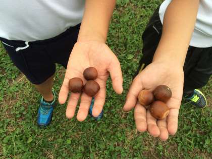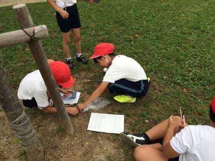広い公園で、秋の植物や生き物を観察しました。