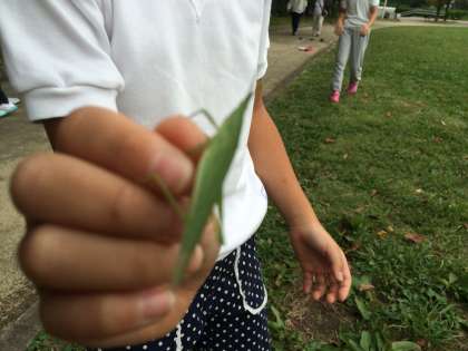 広い公園で、秋の植物や生き物を観察しました。
