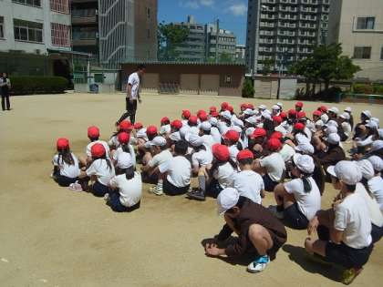 3時間目は高学年対象に、実技指導をしていただきました。走る時の姿勢や体の向き動かし方など、ていねいに指導してくださいました。子どもたちは、プロの走りに驚いていました。