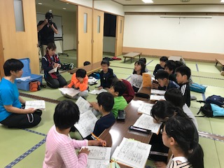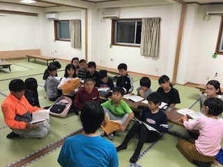 夜のつどいで、各班ごとに話し合ったことを元に、活動班と生活班のリーダーが、明日に向けて、意見交換をしました。