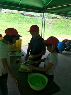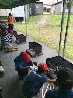 みんなで協力してカレーを作っています。火おこしがなかなか難しいです。