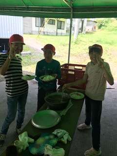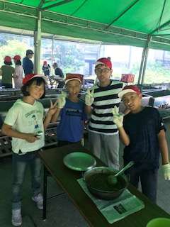 煙が目にしみながらも頑張って、美味しいカレーが完成しました。