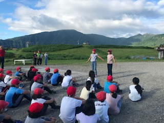 ハチ高原は今日も晴天です。子どもたちもこの空のように晴々とした気持ちで、3日目の朝を迎えました。昨日の感想と今日の意気込みを発表しました。ラスト一日がんばります。