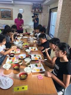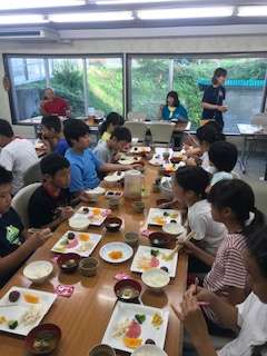 子どもたちは、朝からとても元気です。今日の活動に備えて、しっかりと食べています。