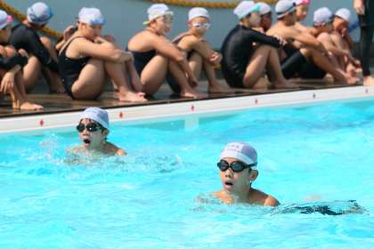 2日(月)、高学年のプール納めがありました。先週、低・中学年の学習は終わりましたので、これで今年度のプール学習は、すべて終了です。お天気になかなか恵まれない日もありましたが、子ども達は、元気いっぱいプール学習に取り組むことができました。