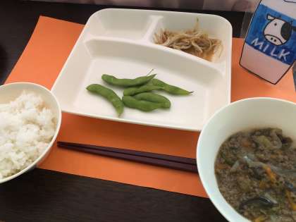 マーボーなす もやしのごま酢あえ えだまめ ごはん