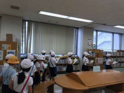 今日2年生は、大阪市立福島図書館に見学に行きました。初めに紙芝居を通して福島図書館のことを教えてもらい、その後は図書館内を見学しました。子どもたちは気づいたことを一生懸命メモして活動していました。