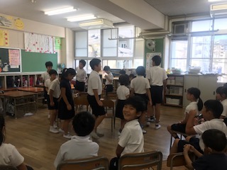 今朝、2学期最初のたてわり遊びがありました。さわやかや秋空の下、運動場でおにごっこをしたり、教室でいすとりゲームをしたりと、みんな楽しそうでした。