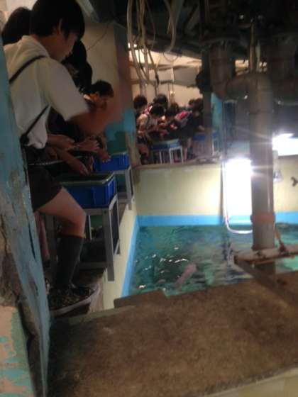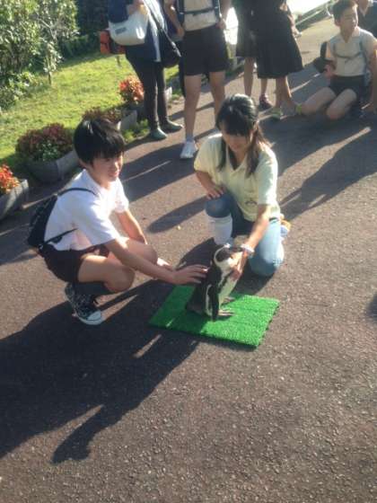 ペンギンたちとスキンシップ。こんなん触りました。みんなキャーキャー、でも貴重な体験でした。