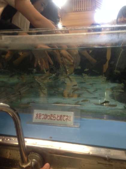 ドクターフィッシュに歓声をあげ、いろんな魚に驚き、楽しく班活動を行っています。空は快晴になり、天体観測ができるかも。でも、風は強く冷たく寒いです。