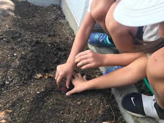 1学期から育ててきたサツマイモの収穫をしました。手で優しく掘り出すと、サツマイモが出てきて、子どもたちは大喜びでした。大きいものや、小さなもの、様々な形のサツマイモを観察することができました。収穫したサツマイモでおいもパーティーをするのが楽しみです。