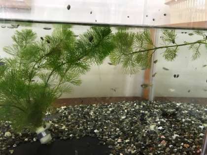 ふくふく広場の田んぼに放していたメダカが卵を産み、たくさんのメダカの赤ちゃんが生まれました。5年生の子達ががんばって田んぼからすくい出して、各クラスで飼っています。餌をしっかりもらって、すくすく育っています。
