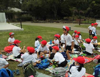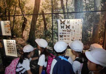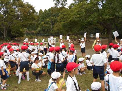 今日は1・2年生で長居公園へ行きました。天気が心配でしたが、最後まで活動することができました。植物園では1・2年生の合同チームで秋見つけをしました。そのあと、博物館を見学し、自分の体よりも大きな展示物に驚いていました。たくさん歩きましたが、楽しく活動することができました。