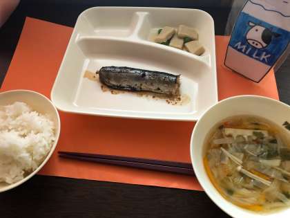 さんまのさんしょう焼き すまし汁 高野どうふの煮もの ごはん 牛乳