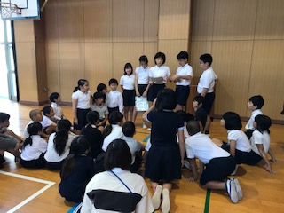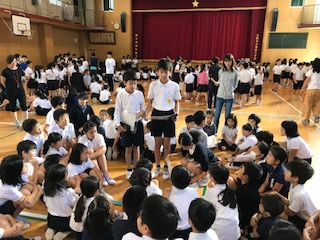 今朝の児童集会は、29日(火)の校内オリエンテーリングで、各班で何のゲームをするのかと、それに向けての準備に必要なものについて、6年生のリーダーから説明がありました。他の学年の子たちは、自分たちの班が何をするのかを、集中してしっかりと聞くことができました。