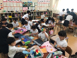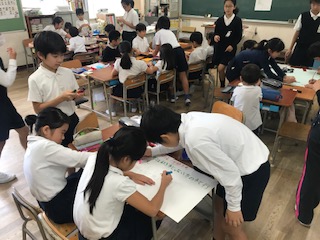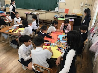 本日(15日)3時間目に、たてわり班活動がありました。29日に行われる「校内オリエンテーリング」の準備のためです。リーダーの6年生の指示に従って、班ごとにゲームの準備を始めました。ポスターを描いたり、飾りを作ったりして、それぞれの割り当てられた仕事をよくがんばっていました。