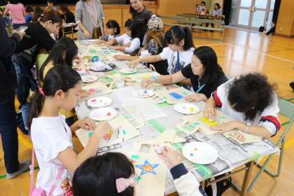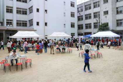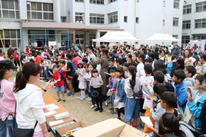 14日(日)に、ふれあいまつりが福島小学校の校庭で行われました。天気が少し心配でしたが、多数の地域の皆様にお集まりいただき、大盛況でした。本校の児童や卒業生も、たくさん参加していました。工作やゲームを楽しんだり、綿菓子や各コーナーに長い列を作ったりしてしていました。