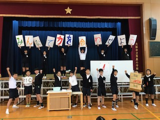 今朝の児童朝会で、集会委員会から、11月の生活目標の発表がありました。今月は「みんなで力を合わせよう」です。毎週の目標も、いろいろな具体例をあげて説明してくれました。今週はいよいよ学習発表会です。みんなで力を合わせて、素敵な学習発表会にしましょう。