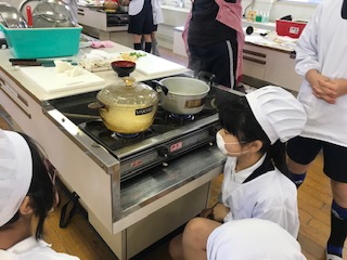 5年生は、昨日今日と調理実習を行いました。ご飯をお鍋で炊いて、みそ汁も煮干しから出汁をとって作りました。お米は、学校のふくふく広場で収穫した福島米を使いました。自分たちで収穫したお米の味は格別でした。
