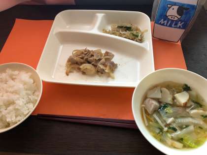 焼き肉は、にんにく 赤みそ 砂糖 こいくちしょうゆで下味をつけてから焼き物機で焼いてます。子どもたちは、牛肉でなく豚肉の「焼き肉」にちょっと不思議そうにしていましたが、今日も給食をおいしくいただくことができました。