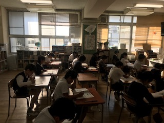 今日は、国語と社会が行われました。子どもたちは皆とても真剣に取り組んでいます。