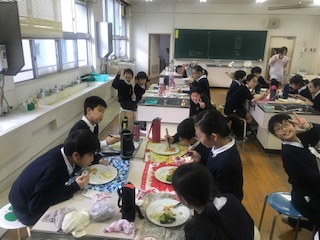 給食を食べた後でしたが、あっという間に完食です。後片付けもがんばりました。