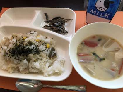 今年初めての給食は、「正月行事献立」でした。白玉もちの入ったお雑煮やごまめにとてもよろこんで食べていました。今年もしっかり好き嫌いなく食べてくれると思います。