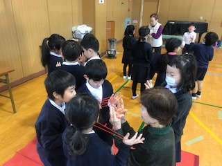 あまり遊んだことのない遊びでしたので、少し難しかったのですが、寿老会の皆さんに丁寧に教えていただき、とても上達しました。子どもたちのためにいろいろと教えていただいた寿老会のみなさま、今年もありがとうございました。