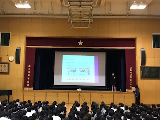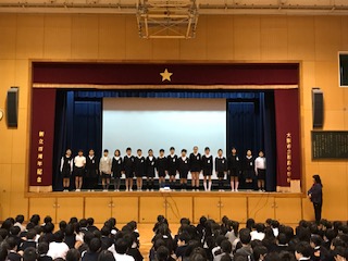 本日の児童集会は、健康委員会の発表でした。委員会活動の紹介と、給食についての発表でした。