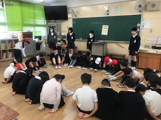 今朝の朝の活動は、たてわり遊びでした。子ども達はいつも今月の遊びは何かとても楽しみにしています。今回は教室で円になってする遊びが多かったようです。