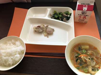 鶏肉のゆず塩焼き さつまいものみそ汁 こまつなの煮びたし ごはん 牛乳