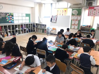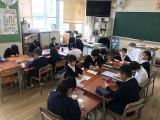 本日2時間目に「たてわり班活動」がありました。卒業を祝う会に向けて、5年生が中心となり、協力してメッセージカードを作りました。1年生の子たちも折り紙でいろいろなものを作ったり、色ぬりをしたりしてがんばっていました。