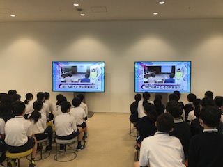 最初にニュース番組ができるまでをビデオで見てからクラスごとに見学しました。
