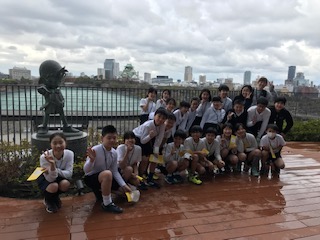 スタジオのセットや中継車を見せていただいたあと、展望台から大阪城を眺めました。