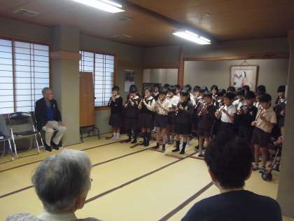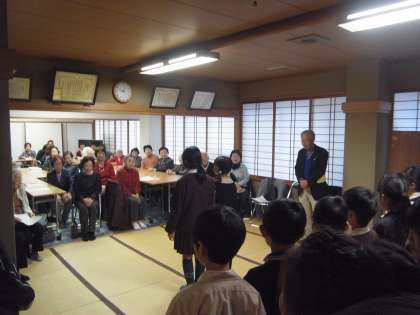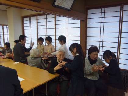 今日(13日)の昼、福島コミュニティーセンターへ行き、昼食サービスに参加されている地域の方々と、ふれあいの時間を持ちました。音楽で練習したリコーダーの演奏をしたり、一緒にあやとりやお手玉で遊んだりしました。あたたかい拍手をいただき、みんなとても嬉しそうでした。短い時間でしたが、楽しいひとときでした。ありがとうございました。