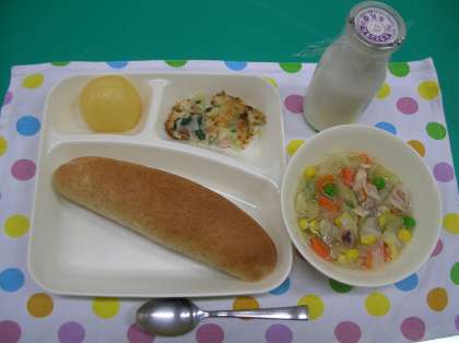 「先生、私、今日のような給食が好き。」と言ってくれる子が何人もいました。給食では、具だくさんのみそ汁も人気がありますが、残食を見ていると「グラタン」の方が人気が高いように思います。将来、大人になって「給食のみそ汁おいしかったな。」と言ってくれる子が多くなることを願っています。(栄養教諭)