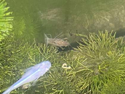 3年生の子たちが、2年生のときに、大事に育てていたザリガニの赤ちゃんが、げんかんにある水そうの中で、まだこんなに小さいですが、すくすく育っています。