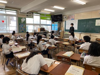 写真は4年生の様子です。4年生は高学年の仲間入りをしました。4年生のめあてを聞いて、新たな気持ちでがんばろうと、気を引き締めていました。課題の確認も、とても真剣に取り組んでいました。