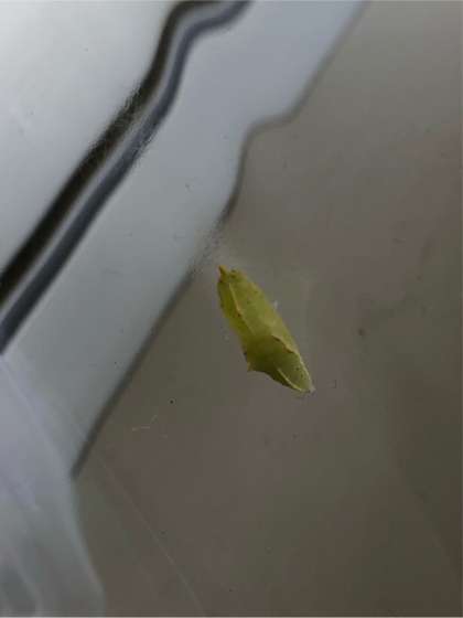 モンシロチョウが、さなぎになり成虫のモンシロチョウに成長しました。
