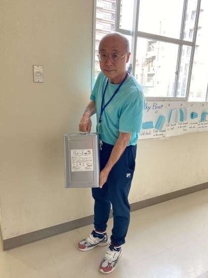 本日、ワールド・ネットワーク株式会社会長 塩月様より、消毒用アルコール15kgをご寄贈いただきました。また、わざわざ学校まで運んでいただき、本当にありがとうございました。温かいお心遣いに感謝いたします。