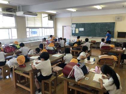写真は分割授業の様子です。どの子も集中して学習に取り組んでいました。