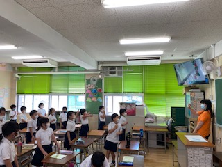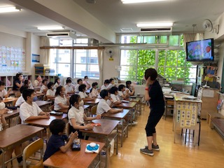 本校では、5時間目が始まる前の5分間を使って、英語モジュールタイムを行っています。英語の歌やチャンツ、フォニックスなど、学年に応じた内容を、DVDを見たりCDを聴いたりしながら、楽しく学習しています。